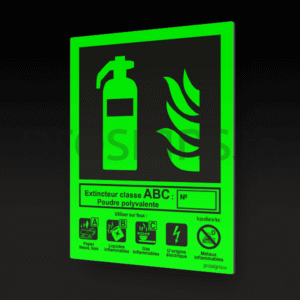 - Plaque / Panneau angulaire 3D Photoluminescent / Phosphorescent. PA-PL-F001m – Extincteur d’incendiePlage de prix : 88,000 د.ت à 169,000 د.ت