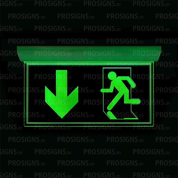 Signalétique d’évacuation lumineuse LED (plafond).