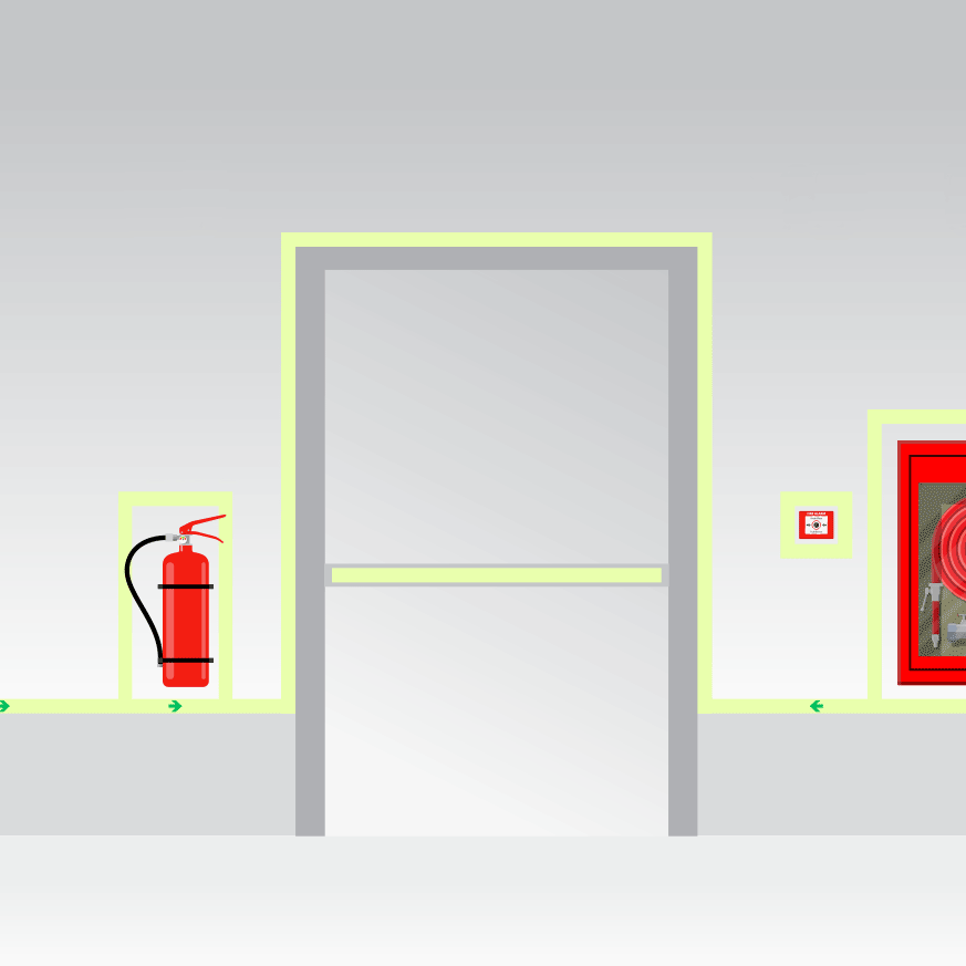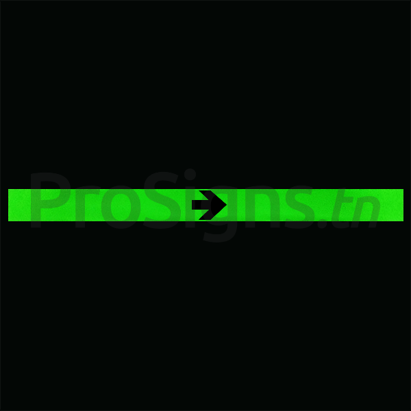 Bande de balisage autocollante photoluminescente 60 x 5 cm, avec ou sans marquage flèche.