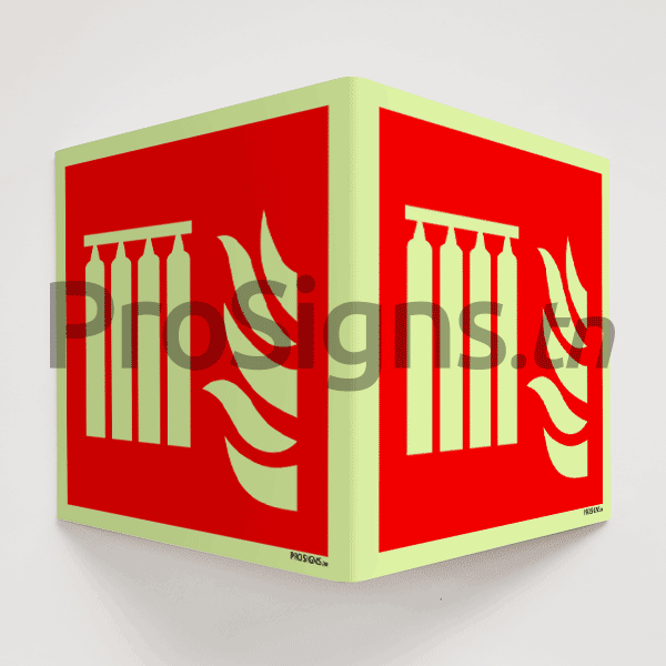 Plaque / Panneau drapeau. Photoluminescent / Phosphorescent. PD-PL-F008 - Système fixe d’extincteurs d’incendie en série