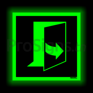 Matériau photoluminescent ; le panneau s’éclaire quand il n’y a plus de lumière et l’espace plonge dans l’obscurité, en cas d’incendie par exemple.