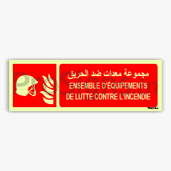 Panneau Photoluminescent / Phosphorescent / ‘Glow-in-the-dark’. PLF004hmar – Ensemble d’équipements de lutte contre l’incendie مجموعة معدات ضد الحريق