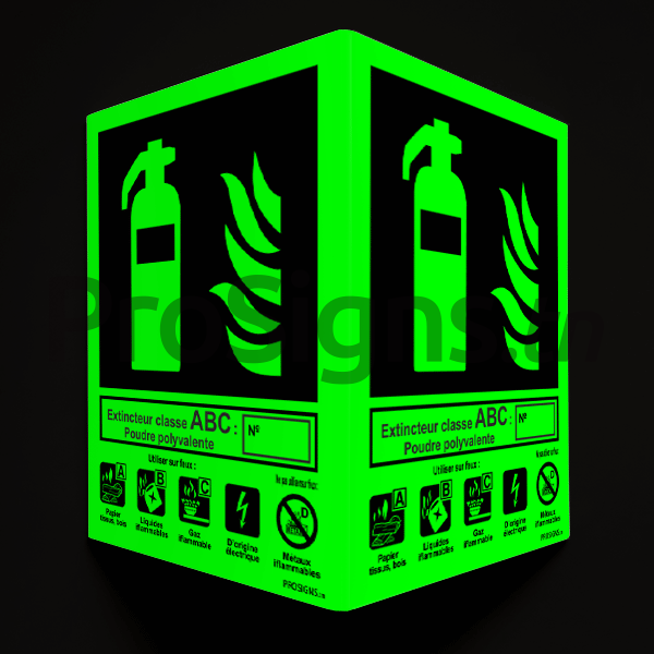 Plaque / Panneau drapeau Photoluminescent / Phosphorescent / ‘Glow-in-the-dark’. HNFEX041PL – Extincteur classe A-B-C, poudre